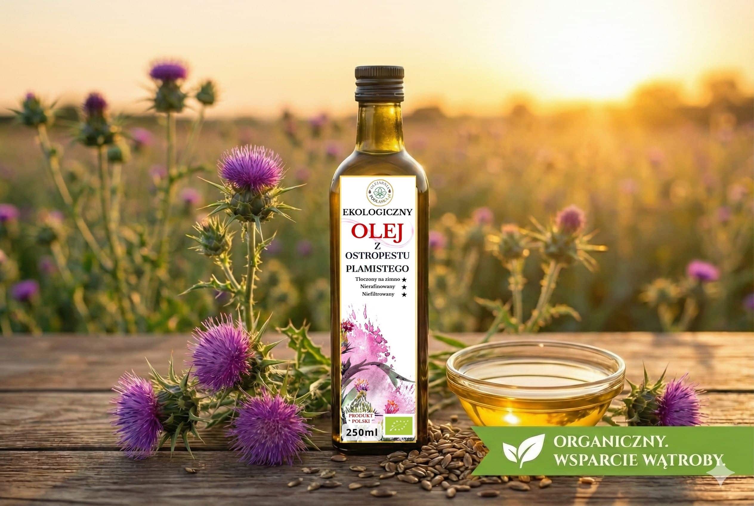Wprowadź do swojej diety olej, który od wieków znany jest jako  przyjaciel wątroby. Olej z ostropestu plamistego to coś więcej niż dodatek do potraw – to funkcjonalny dar natury, który pomaga oczyścić organizm i przywrócić mu równowagę. Jeśli czujesz, że Twój organizm potrzebuje detoksu i wsparcia w codziennej pracy, ten olej jest stworzony dla Ciebie.